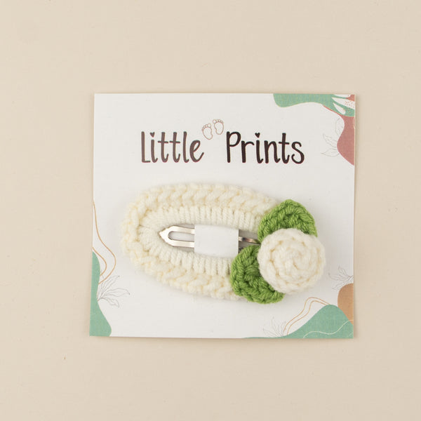Agrafa crosetata pentru fetite - Leaf Flower - Ivory