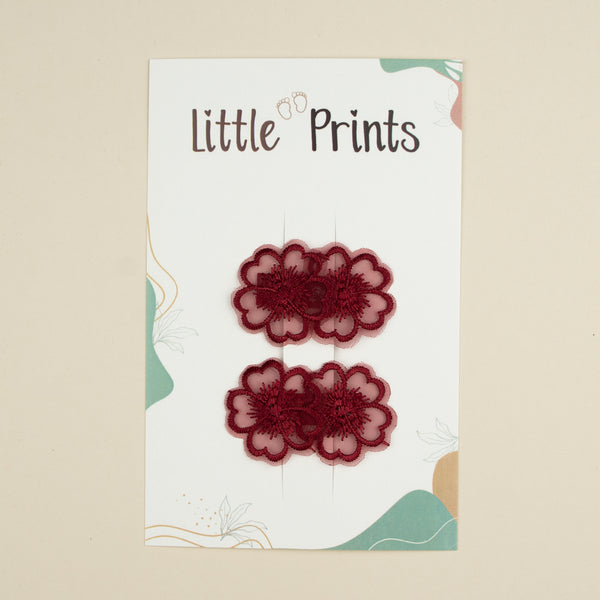 Set 2 mini agrafe pentru bebelusi Daisy - Burgundy
