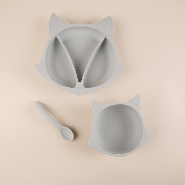 Set diversificare bebelusi din silicon (bol cu ventuza + farfurie cu ventuza anti-alunecare + lingurita) - Fox Cloud