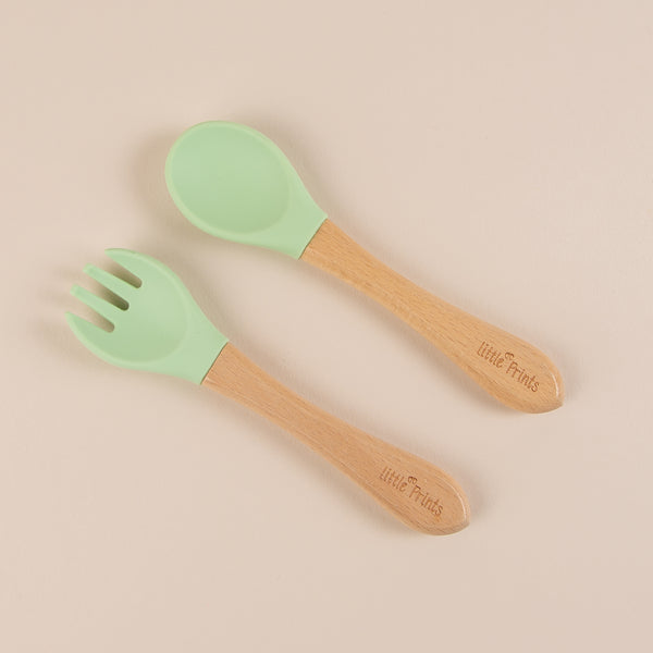 Acest set de lingurita + furculita din silicon cu manere din lemn sunt perfecte pentru perioada cand bebelușul tău este pregătit pentru diversificare! Tacamurile Little Prints sunt flexibile si îi permite copilului să-și ridice cu ușurință mâncarea. Mânerul este perfect pentru degetele mici ale bebelușului.