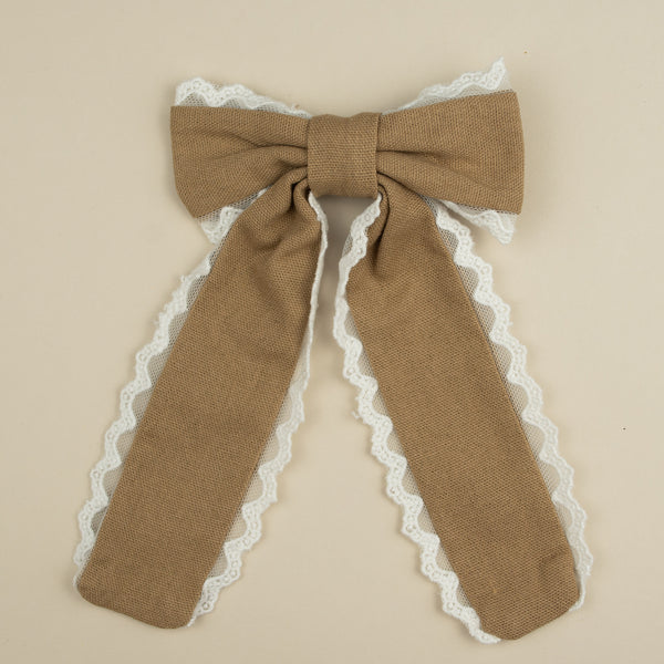 Agrafa fetite din tesatura de in cu detalii brodate - Latte