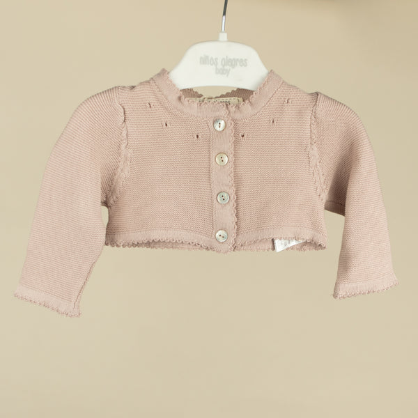 Bolero cu maneca lunga si detalii in ton pentru bebe fetita nou-nascuta.