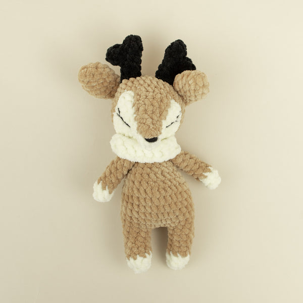 Intra in magia sarbatorilor de iarna cu jucăria croșetată manual cu unul dintre cei doi reni gemeni ai lui Mos Craciun - Dancer. El este perfect pentru mânuțele mici ale bebelușilor dumneavoastră, putând fi și partenerul special de somn al micuțului.