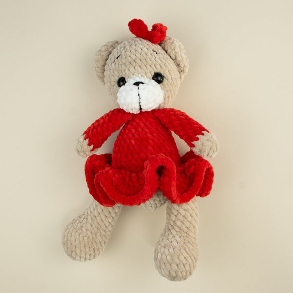 Jucarie Teddy crosetata manual din fir catifelat pentru bebelusi - Red