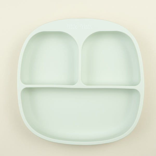 Farfurie divizata diversificare bebelusi din silicon cu ventuza anti-alunecare Little Prints - Soft Nordic Mint
