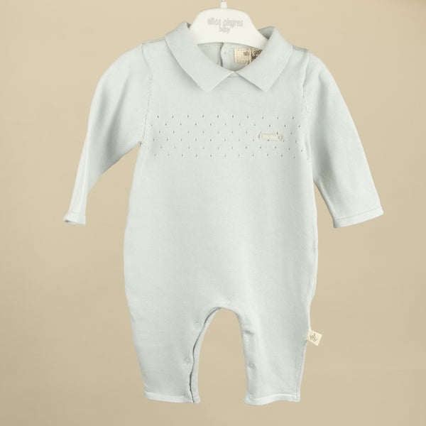 Salopeta tricotata din bumbac pentru bebelusi - Ice Blue