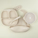 Set diversificare bebelusi din silicon (bol cu capac + farfurie cu ventuza anti-alunecare + lingurita + baveta) - Soft Caramel