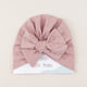 Caciulita turban bebelusi din bumbac cu fundita - Royal Blush Pudra