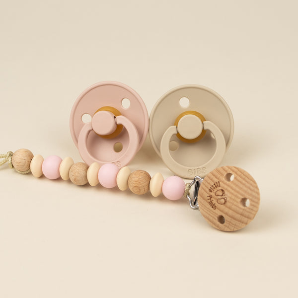 Set lantisor pentru suzeta + 2 Suzete BIBS Colour din latex - Edis Blush