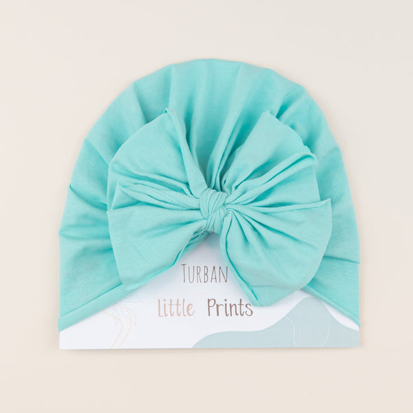 Caciulita turban bebelusi din bumbac cu fundita - Light Turquoise
