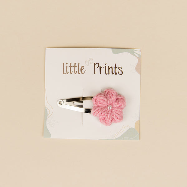 Agrafa pentru fetite cu floricica tricotata - Pink