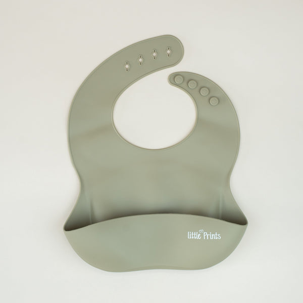 Baveta silicon hranire bebelusi/copii diversificare Little Prints - Olive