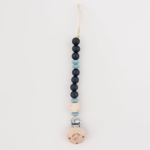 - un suport pentru suzeta non-toxic, durabil și elegant, care ține suzeta copilului dumneavoastră lângă el.