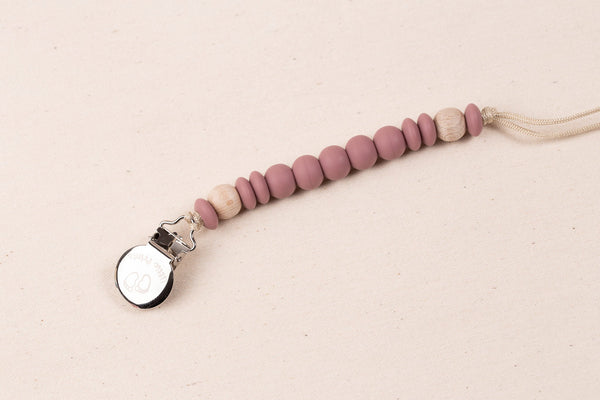 - un suport pentru suzeta non-toxic, durabil și elegant, care ține suzeta copilului dumneavoastră lângă el.