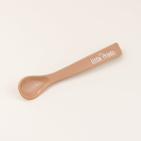 Lingurita din silicon pentru bebelusi Little Prints - Camel