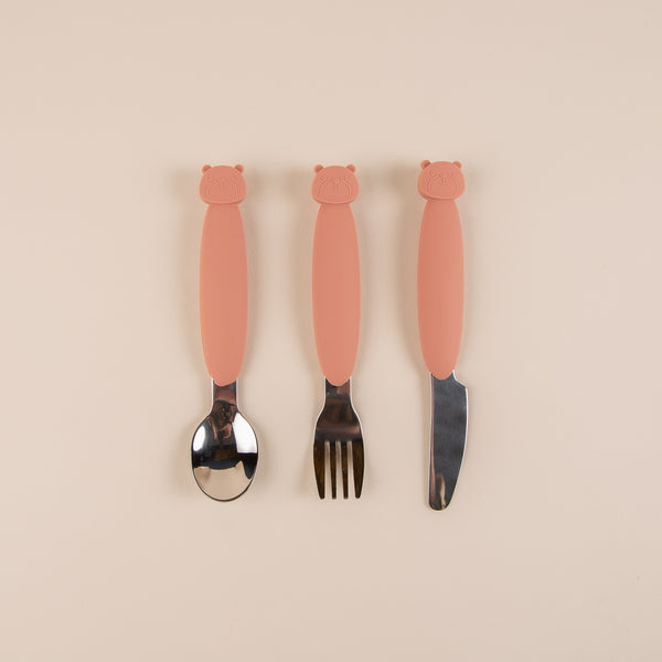 Set tacamuri furculita + lingurita + cutit antrenament bebelusi in diversificare - Bear Rosedown