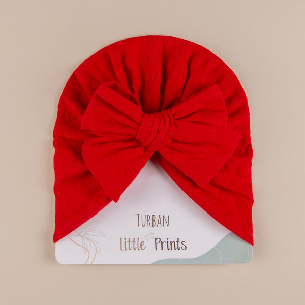 Caciulita turban bebelusi din bumbac cu fundita - Royal Red