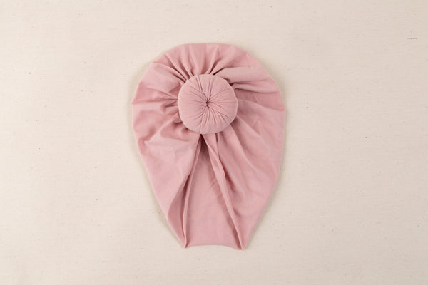 Caciulita turban bebelusi din bumbac cu nod - Blush