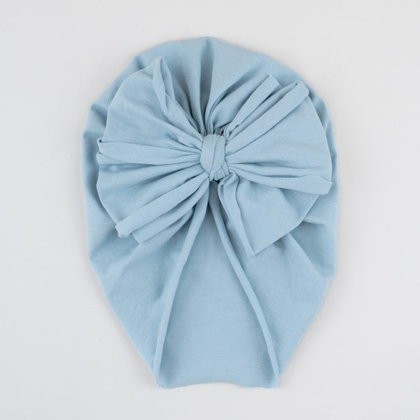 Caciulita turban bebelusi din bumbac cu fundita - Cambridge Blue